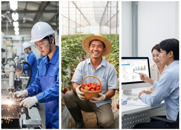 - 농축산업: 비닐하우스 관리, 축사 작업, 수확 등